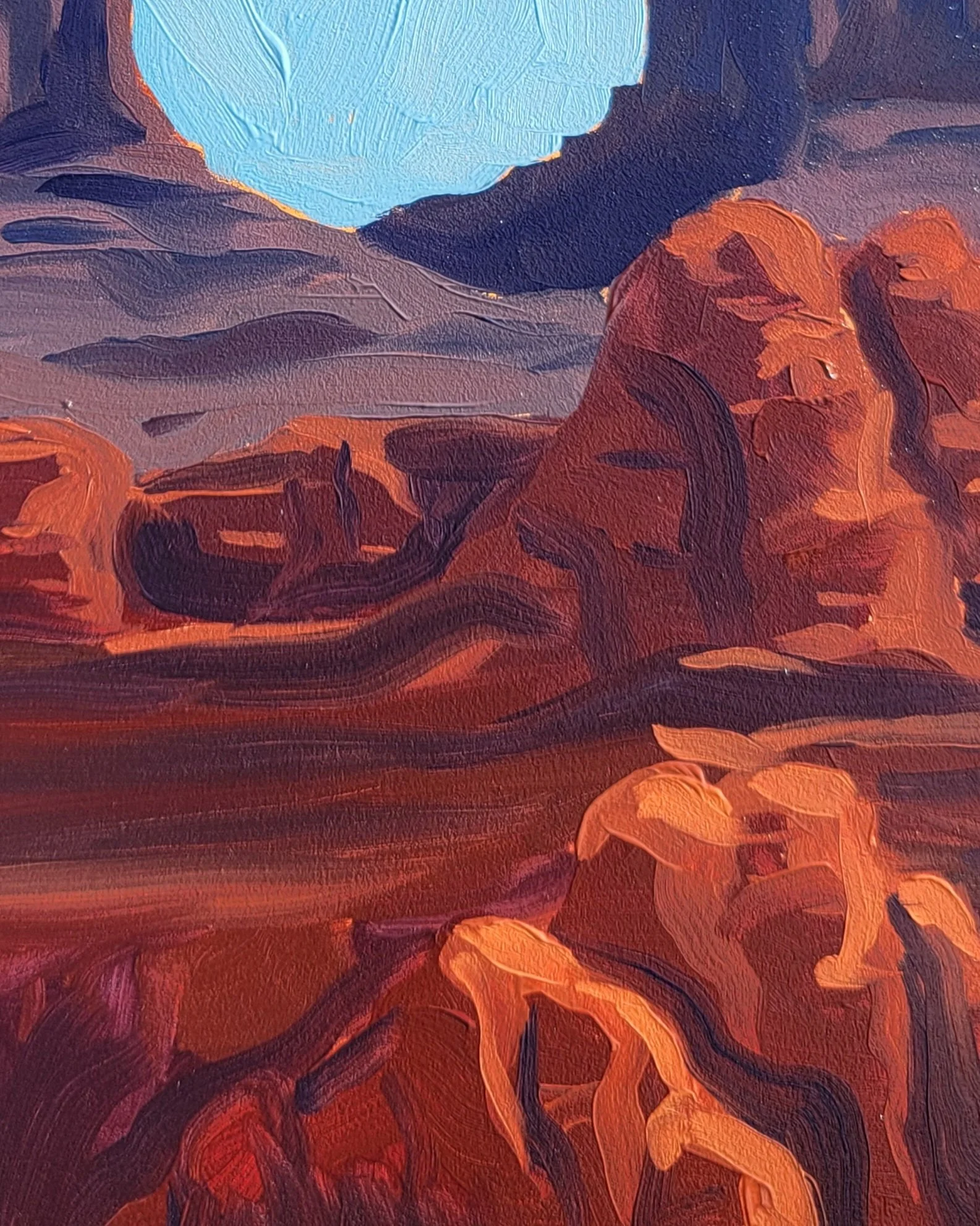 Painting dimensions: 5” x 7”. Shipped 8” x 10” with mat, no frame.