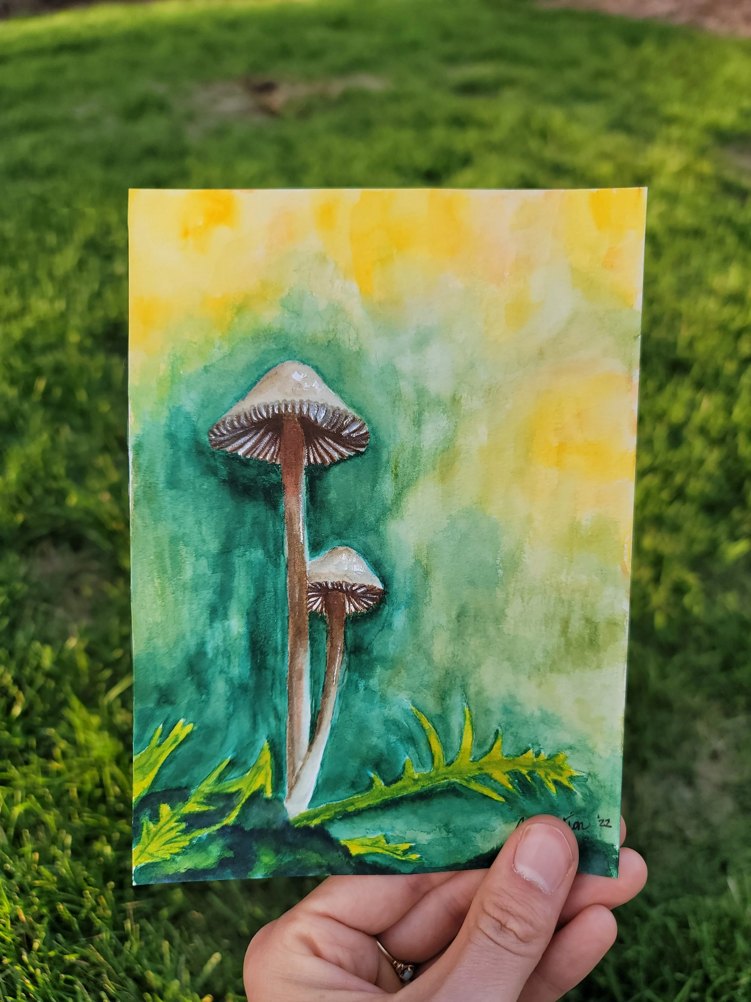 Mushrooms 5” x 7” watercolor brush pen painting 2022
