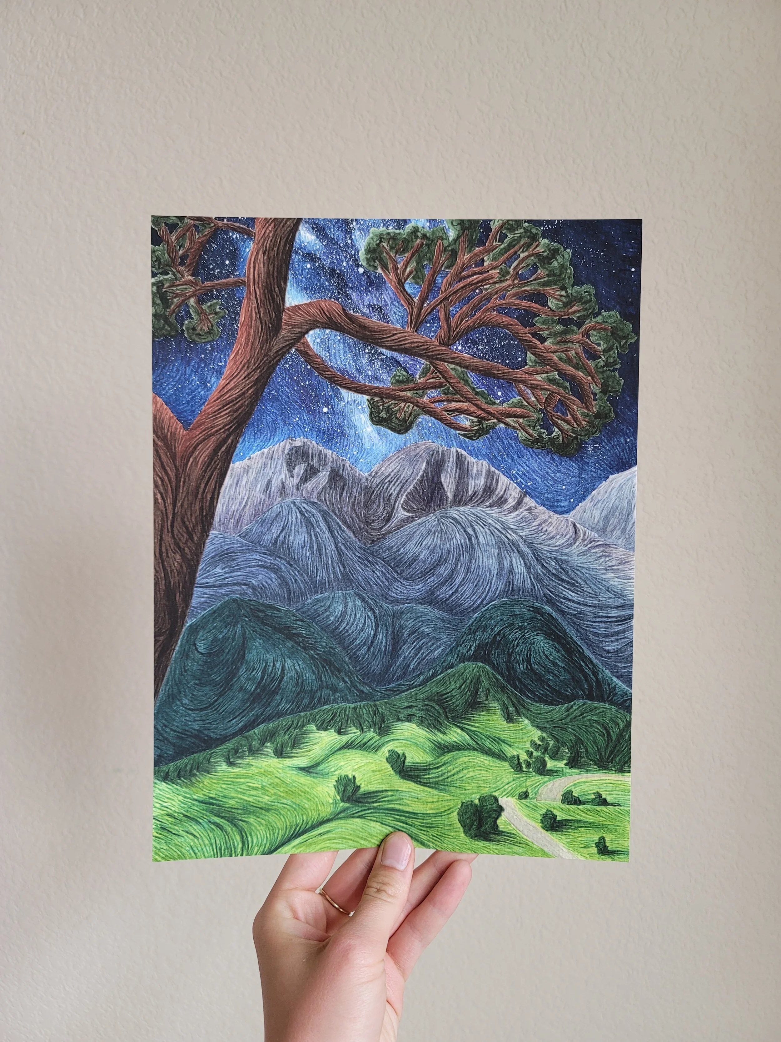 Fine art reproduction of the watercolor painting “Amongst the Stars” by Jo Nova.