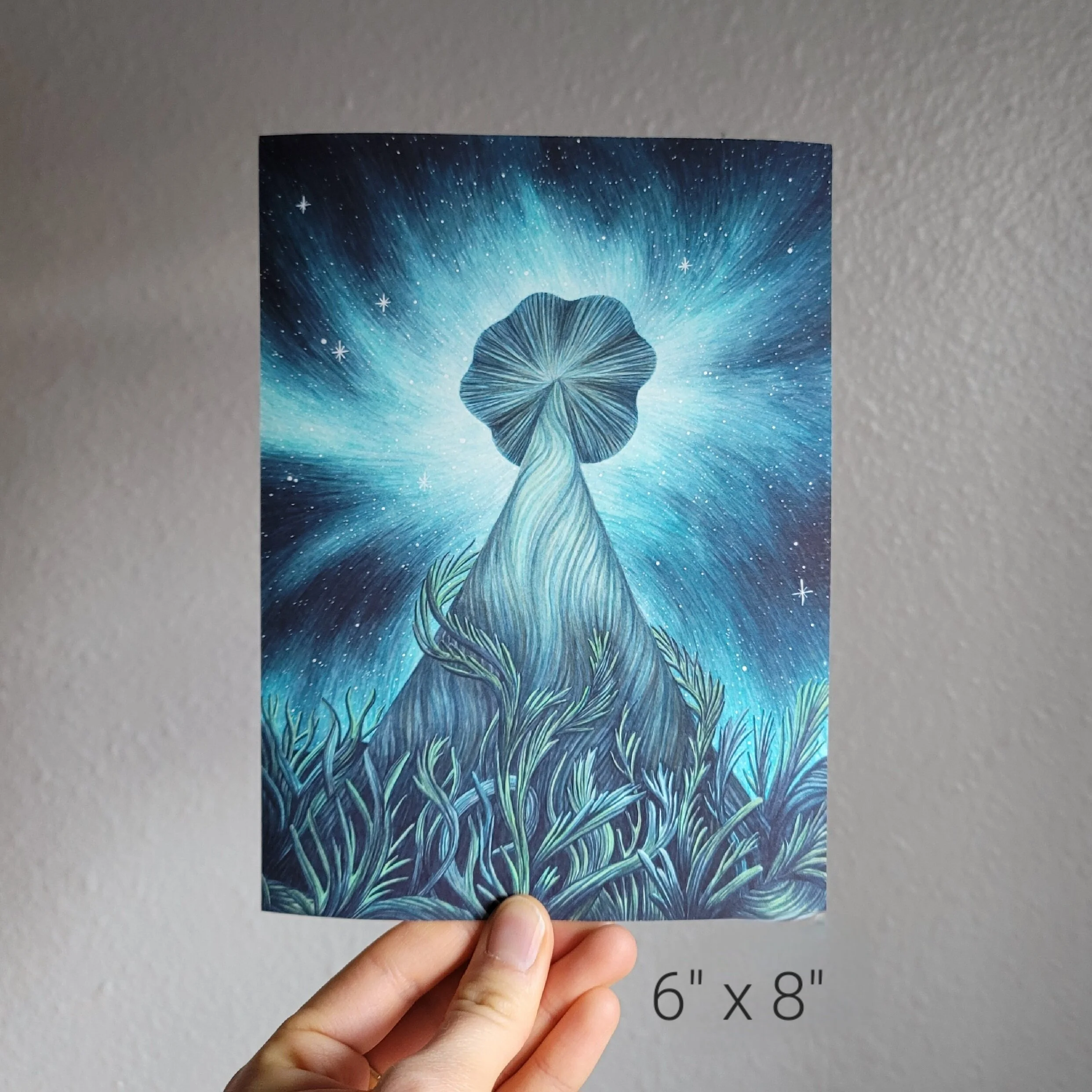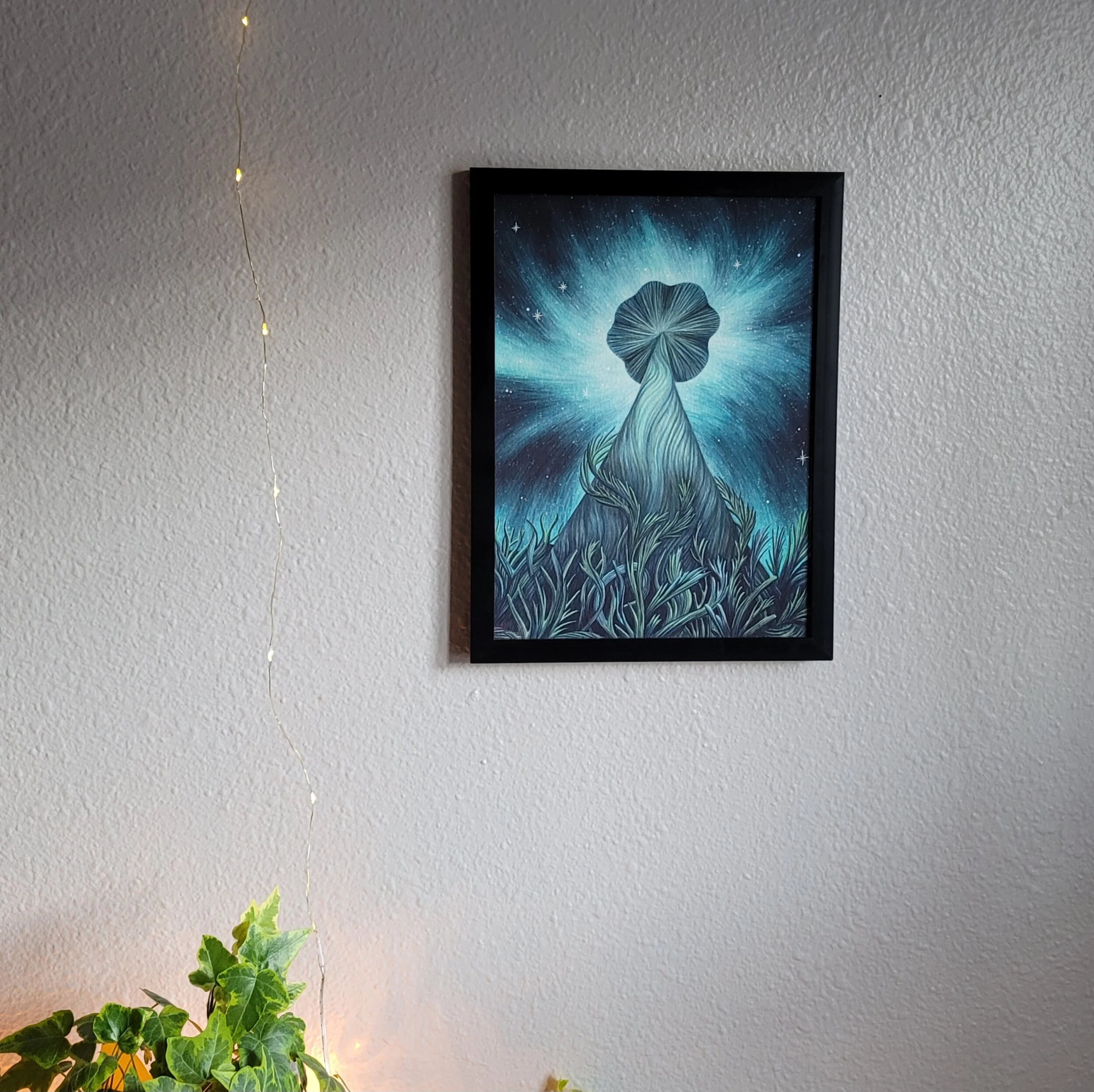 Unprotected prints are subject to water damage. It is recommended to store in the plastic sleeve until it can be placed in a protective frame.